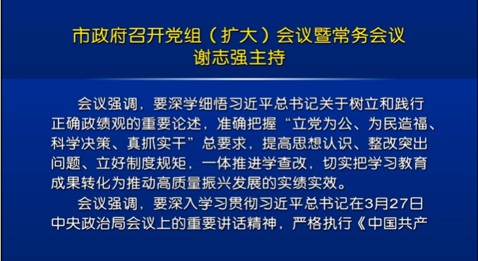 市政府召开党组(扩大)会议暨常务会议谢志强主持