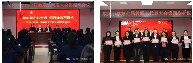 2026年1月14日下午,东风小学第七届教职工代表大会第四次会议在学校会议室隆重举行。大会以“凝心聚力共奋进乘风破浪再扬帆”为主题,全体教职工代表齐聚一堂,共谋学校发展大计,共绘高质量发展新蓝图。