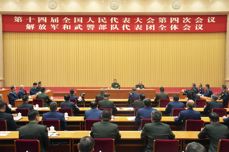 3月7日下午,中共中央总书记、国家主席、中央军委主席习近平出席十四届全国人大四次会议解放军和武警部队代表团全体会议并发表重要讲话。新华社记者 李刚 摄